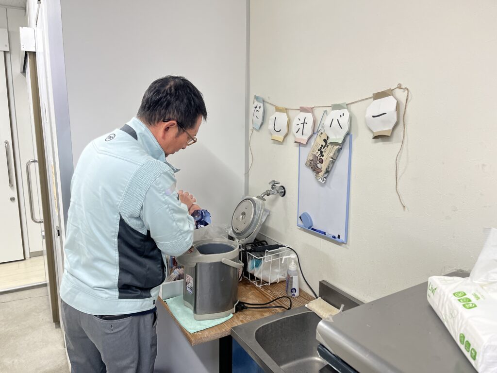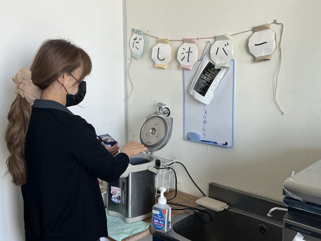 仕事の合間のリフレッシュや、寒い季節の水分補給として、多くのスタッフに親しまれているスポットです。また、社員の健康管理や、だしをきっかけとした社内のコミュニケーション活性化にもつながっており、ホッと一息つける癒しの時間が生まれています。