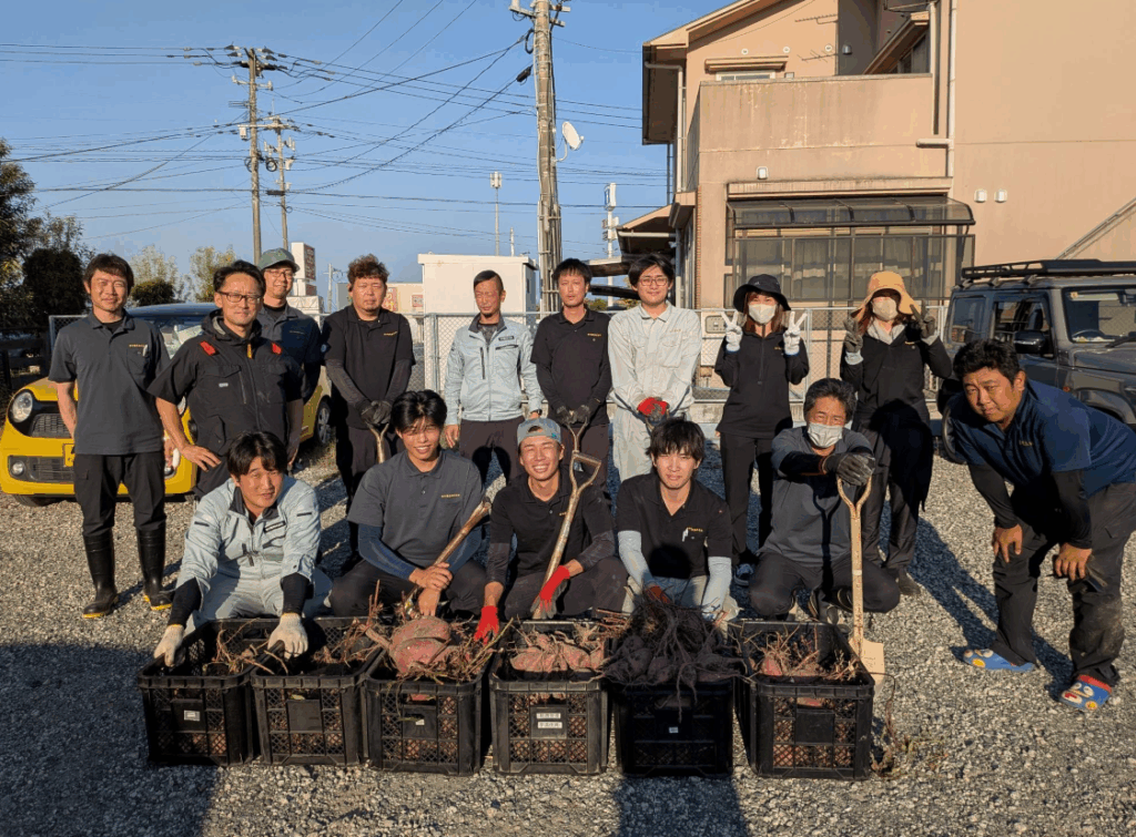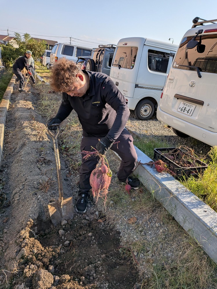 5月に植えたサツマイモの苗から5ヵ月が経ち、ついに皆さんが待ちに待った収穫の時期を迎えました! 当初予定していた収穫日はあいにくの雨で延期となりましたが、晴天が続いた週末に、現場から戻ってきたメンバーが集まり、芋掘りを実施しました。 今年も見事な豊作となり、立派なサツマイモがたくさん収穫できましたよ~!!